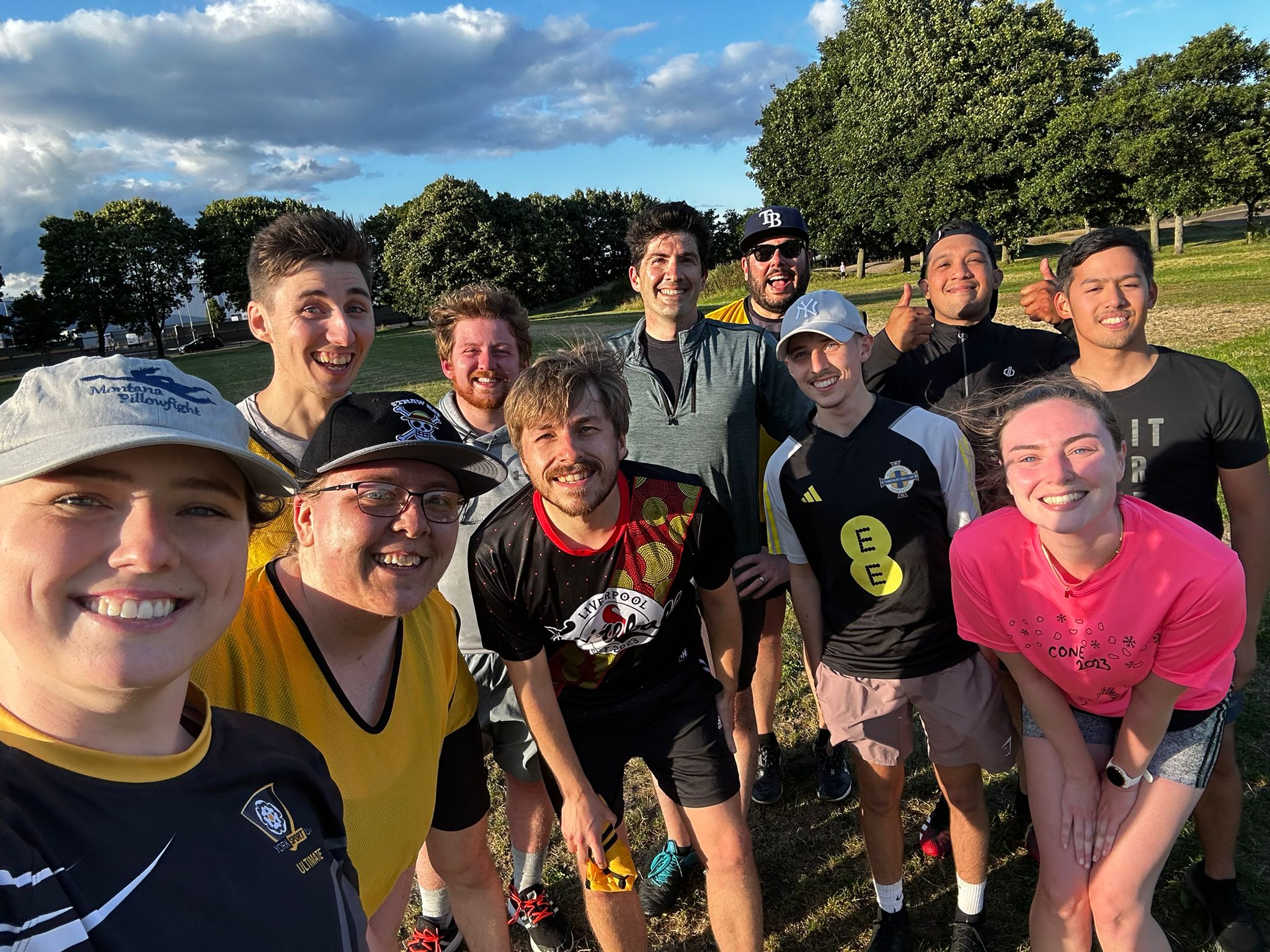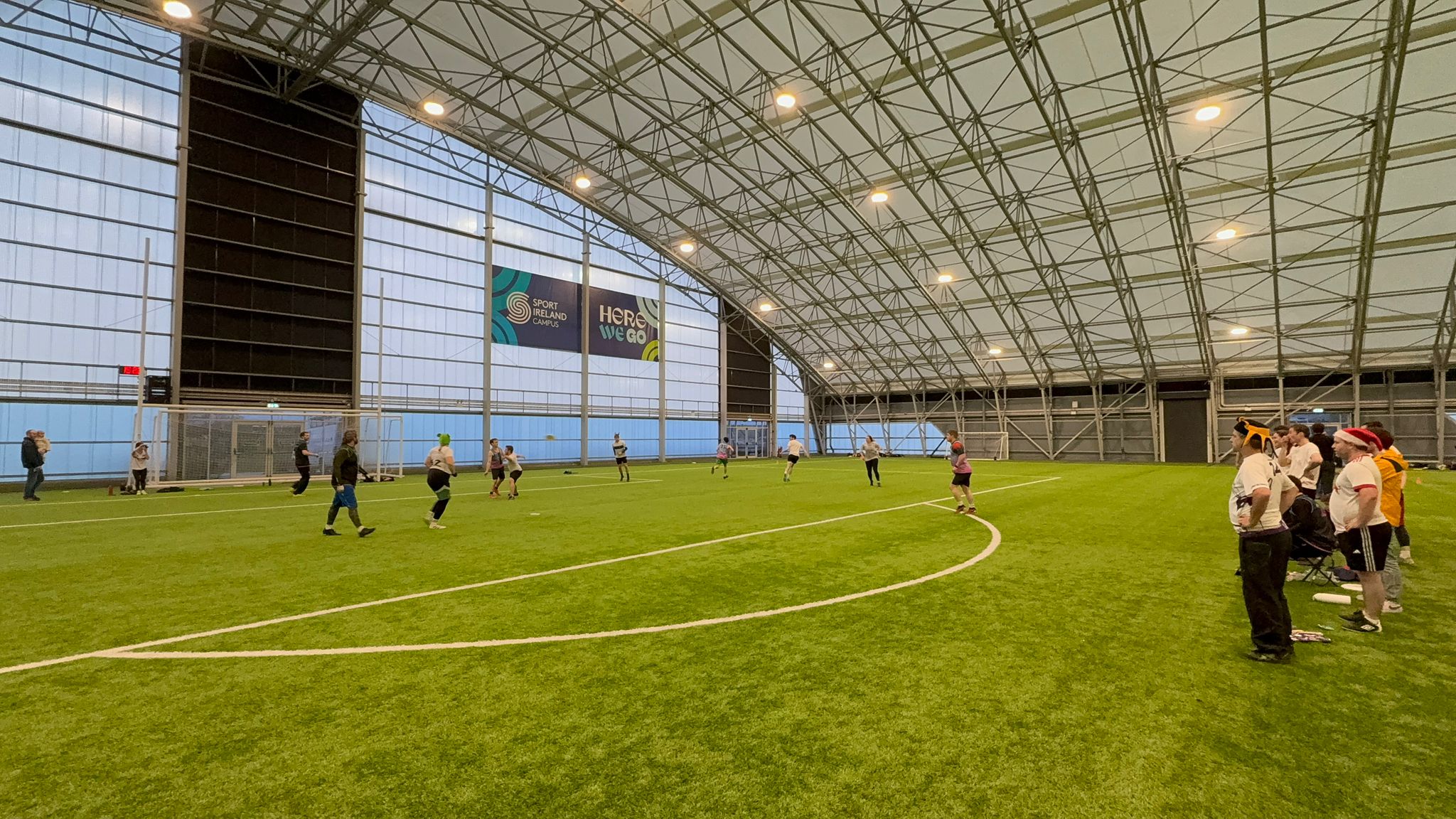We currently play at the top of Ormeau park beside the inside tennis courts.